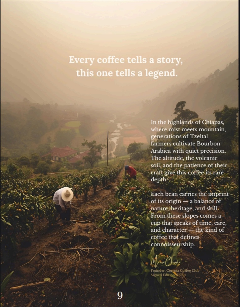 Introduction to our Mexico Chiapas coffee tasting and masterclass. We explore a guided tasting centered on the Mexico, Chiapas bourbon barrel–aged coffee, sourced from indigenous farmers and aged in American oak barrels. The experience unfolds as both sensory ritual and cultural study: A guided exploration of aroma, body, acidity, and finish A step-by-step tasting using an SCA-inspired cupping methodology Insight into roasting, origin, and craftsmanship A dessert and coffee pairing, including a culinary demonstration Contextual storytelling that places the coffee within its cultural and historical landscape.