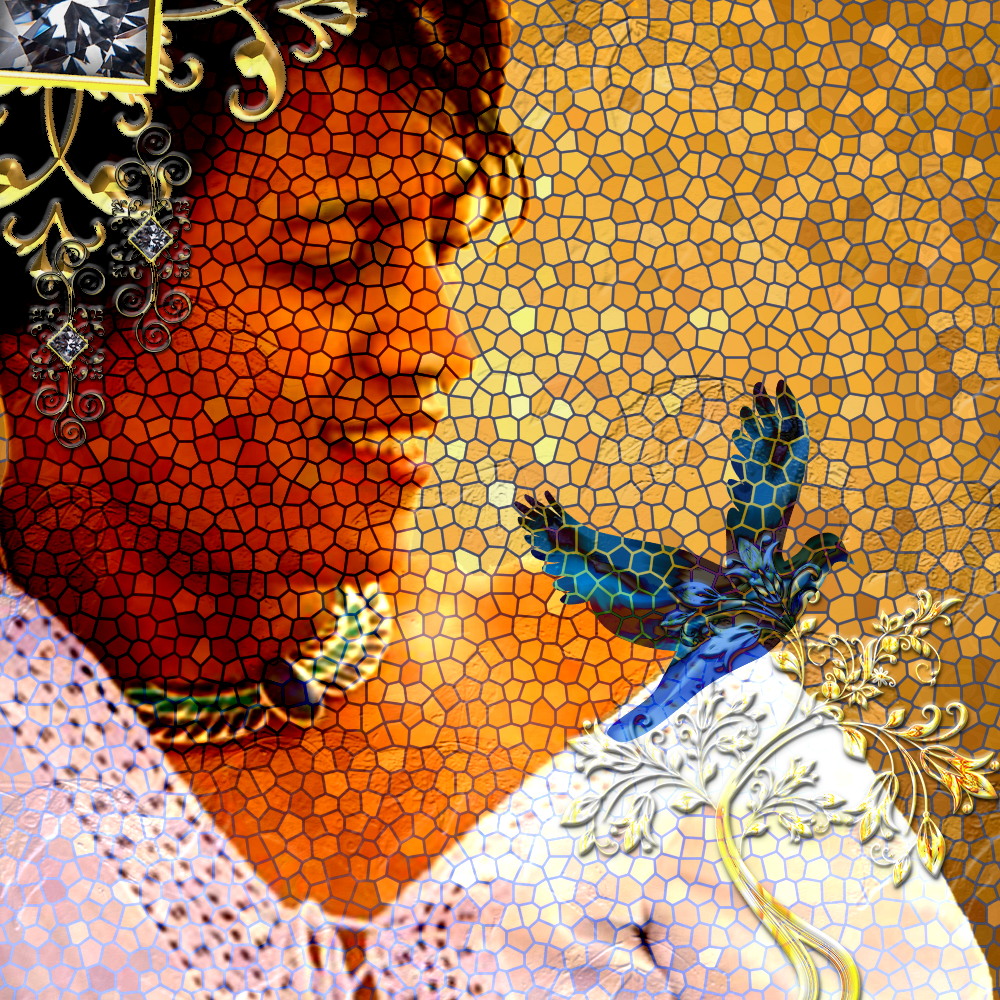 This piece introduces tne Founder’s identity, legacy, and cultural continuity as they feed into the estate. Rendered in a mosaic-inspired composition, the portrait draws from Non-western antiquity and Black American lineage while expressing a modern narrative of authorship, heritage, and self-definition.